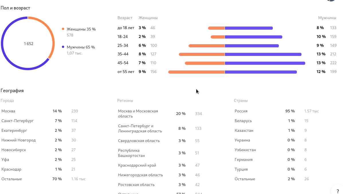 Интересно, что у меня тут смотрят больше мужчины, чем в ютуб или Инсте. Вообще в ленте рекомендаций женский и мужской контент равномерно распределяется. Это не может не радовать меня.