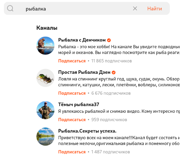 Заходим на яндекс дзен и в поиске дзена вписываем тему своего канала: