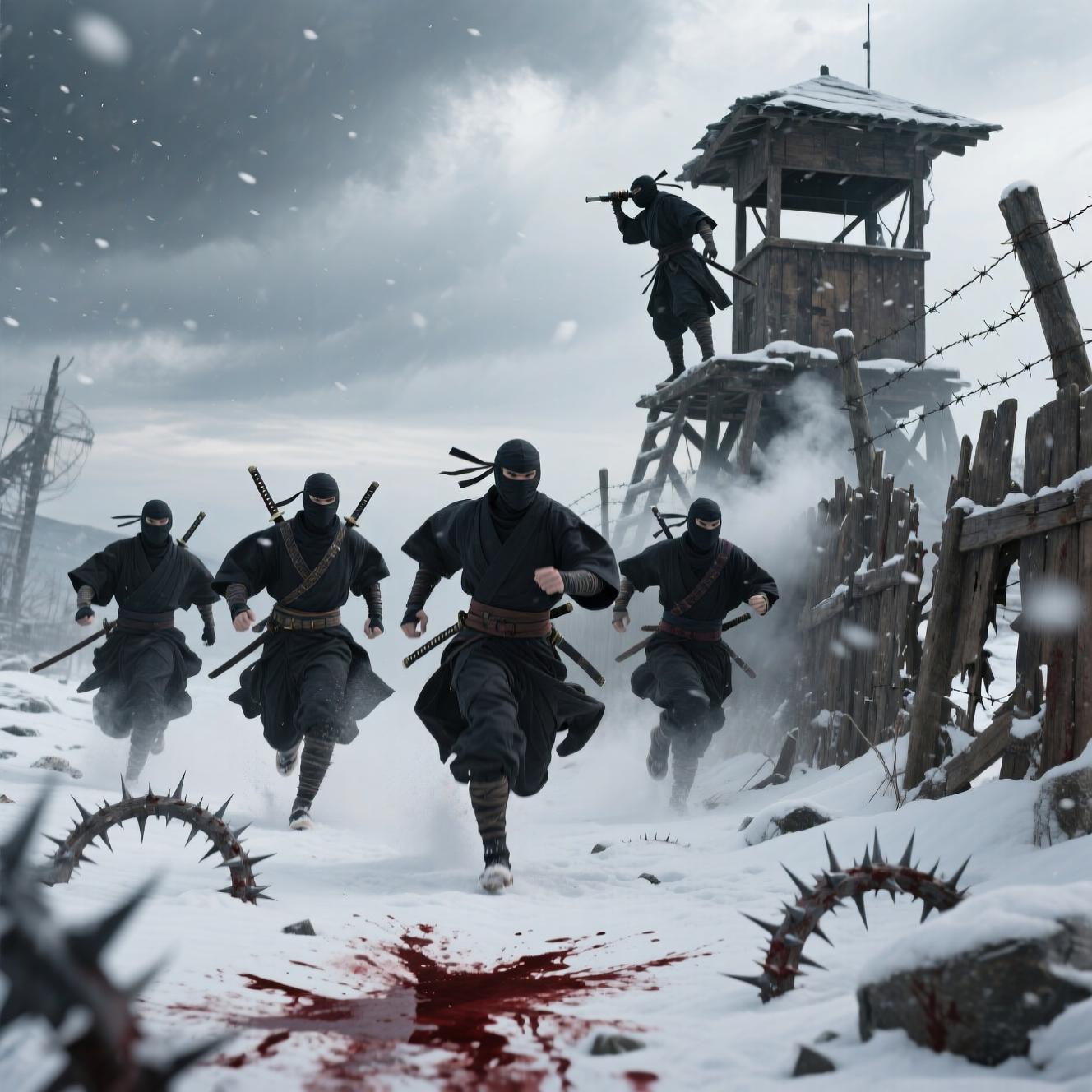 Я подошел к двери, действительно, лежали меч в ножнах и черная одежда ниндзи. Я потрогал, ткань была утепленная с начесом. Всё лучше моих телогрейки с ватниками и незаметнее. Также в комплекте с одеждой были всякие гаджеты, типа маленького фонарика, рюкзачка и всякая мелочь. Призраком, спустившись на кухню, я нашел склад с консервами, взял несколько готовых каш и двинулся к выходу. Открыв дверь, я напоролся на сенсея, который сидел на маленьком коврике, на крыльце и пил чай.