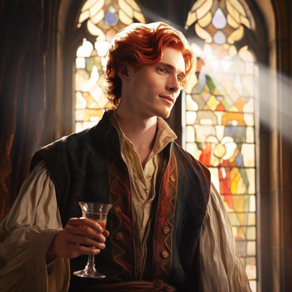 Взгляд Лорела упал на бутылку красного, мирно собиравшую лучи утреннего солнца. Они улыбнулись друг другу. Темное стекло – блеснув остатками рассвета, Лорел – жемчужной улыбкой молодого кронпринца. Через несколько лун ему исполнится двадцать шесть. Весомый повод начать отмечать заранее. Свет ложился на бархат длинного дублета, такого же рыжего, как и он сам.