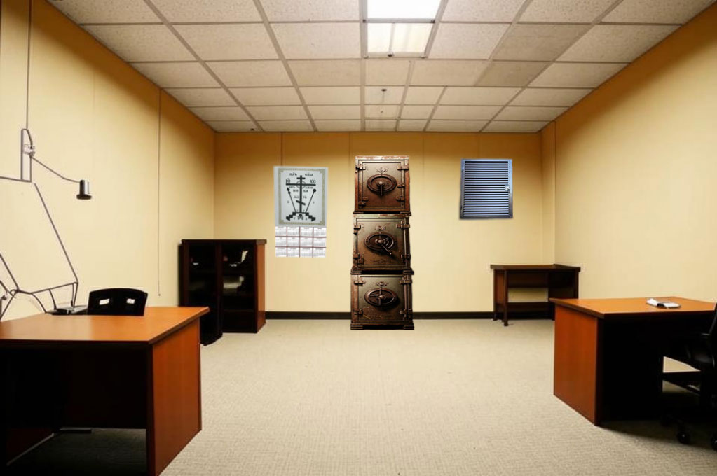 Дальше располагалось среднего размера помещение с тремя письменными столами у правой стены и шкафом с противоположной стороны. У дальней стены, взгромоздившись друг на друга, стояли три старых ржавых сейфа. Выцветшие дверцы были покрыты толстым слоем пыли и паутины, – видимо, доступ к главным тайнам завода был давным-давно заброшен. Окутавшая мир глобальная паутина поглотила всеобщий разум, укрыв старые бумажные секреты в тени забвения. А может, все секреты уже выданы по сходной цене и вывезены «партнёрам» за бугор?