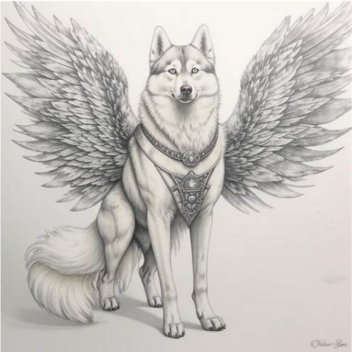 Обалдеть, на поляне в лучах солнца красовался прекрасный серебристый, очень похожий на хаски, белокрылый пёс. Величиной с коня.