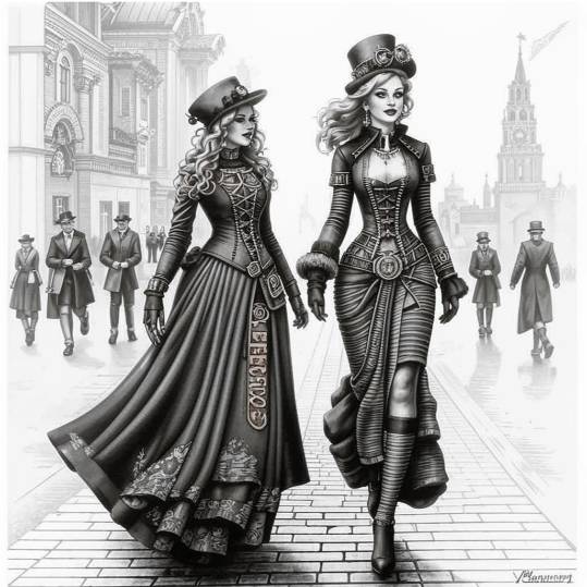 – Вот! А я вижу великолепное и гармоничное сочетание уютного дворика с частичкой японского сада, в окружении славянских теремов, и домов в колониальном стиле. Я вижу пекарню, из которой разносится невероятный аромат карамели и ванили. Везде пар, шестерёнки, электричество, на рельсах паровые трамваи, а рядом с ними конные экипажи вперемешку с машинами, в небе дирижабли и самолёты. Казалось бы, мир урбанизации – на улицах хозяйничают гремящие и воняющие монстры. Везде должен преследовать запах горячего железа, машинного масла, гари и дыма, но нет! Этого нет! Зато есть чары! О-о-о-! Эти невероятные чары! Не знаю, как я жила без них! А мимо всего этого прогуливаются чопорные матроны и джентльмены, очаровывая тонко выделанной кожей, сюртуками, оборками, металлическими заклёпками, перчатками с обрезанными пальцами и цилиндрами! Это же волшебно!