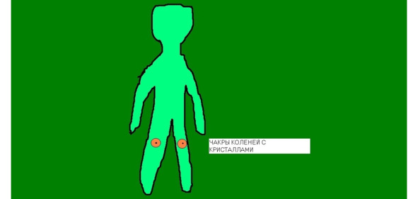 ……Дорогая сестра, обрати внимание на следующие чакры вместе с кристаллами: колени особенно с правой стороны. Справа – разрушенный кристалл колена (рис. 5). Ведь человеческий организм – это такая тонко организованная структура. Если есть где-нибудь брешь, страдает весь организм.