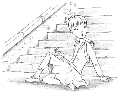 Right, now’s my chance, thought Holly in relief as they went outside, but again it was no good. Chloe ran to the steps of the ballet school and took a big jump down from the sixth one, which neither of them had ever done before. Then she ran back up and told Holly brightly that she was going to try all eight steps.