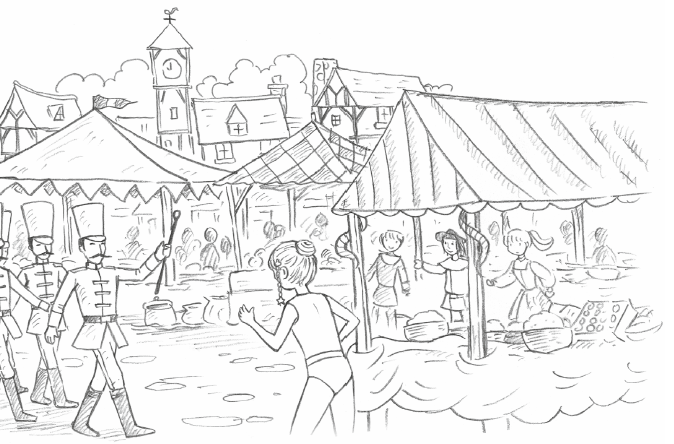 Jade was standing in a wide avenue full of brightly coloured stalls. The soldiers from the Nutcracker ballet were marching down the street and there were people lining the avenue, clapping as they passed. Behind them came a group of clog dancers.