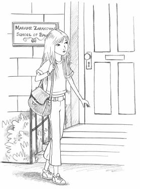Just after ten o’clock. She was a little bit late. Still, she patted her bag with the red shoes in it and told herself for the hundredth time that she was only staying for one lesson to see what was so special about it. Then she leaped up the steps, two at a time, and peered in through the big front window.