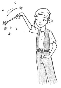 “We look just like cabin boys,” Nutmeg said, looking pleased. “Well, apart from our ballet shoes. We can’t really wear them. Hmmm …” Nutmeg waved her wand again and suddenly they each had a small leather bag attached to their belt.