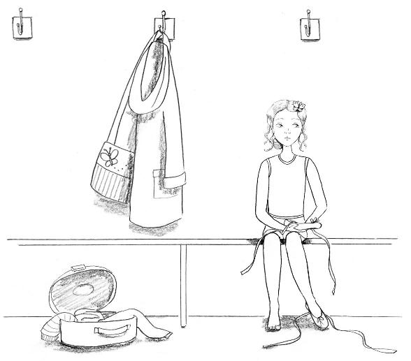 Delphie walked slowly into the other dance studio, thinking about the look on Madame Za-Za’s face. Did she think Delphie was being horrible? She hated the thought that she had disappointed her dance teacher in some way, but she felt too awkward now to go in and talk to Rosa. Trying not to dwell on what had just happened, Delphie went to the barre, moved her feet into second position and began to slowly bend and straighten her knees.