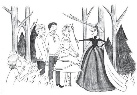 “I saw a horrible fairy in the wood!” gasped Rosa. “She turned people to stone. Including Nutmeg!” She told the King and Queen what she had seen.