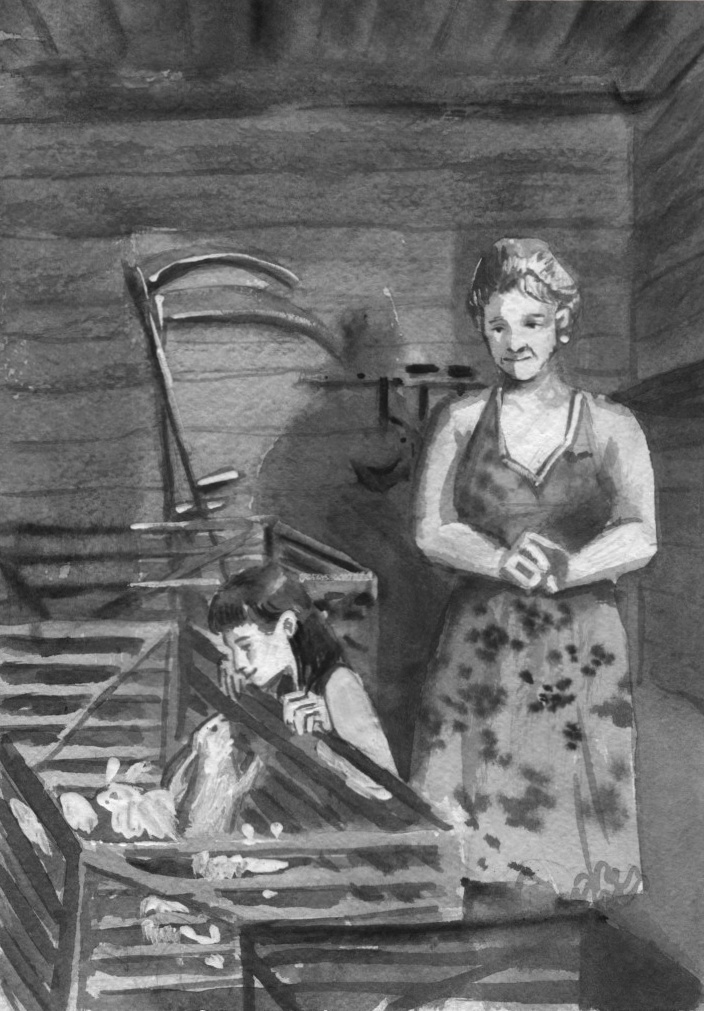 Она потянулась, зевнула и подумала, что может сделать вид, что не услышала и, повернувшись носом к стенке, ещё подремать полчасика, как вдруг пришедшее осознание сказанного бабушкой моментально вытеснило сон. Машка родила! Именно сегодня, во даёт! Даша выскочила из кровати и побежала через сени в сарай прямо в чём была: босиком, в трусиках и майке. На секунду затормозив на верхней ступеньке старой деревянной лестницы, ведущей от сеней вниз в сарай, она с чисто детским восторгом, возникающим от отсутствия жизненного опыта, осмотрела открывшуюся ей картину. Внизу, у средней из трёх больших деревянных клеток для кроликов, стояла бабушка и тщетно пыталась дотянуться до чего-то, что ускользало из вида.