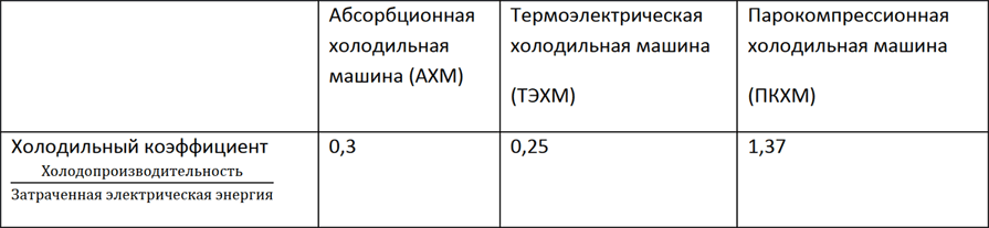 Таблица 7. Сравнение холодильных машин по энергетическим показателям