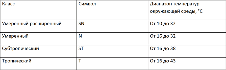 Таблица 8. Классификация бытовых холодильников с учетом климата