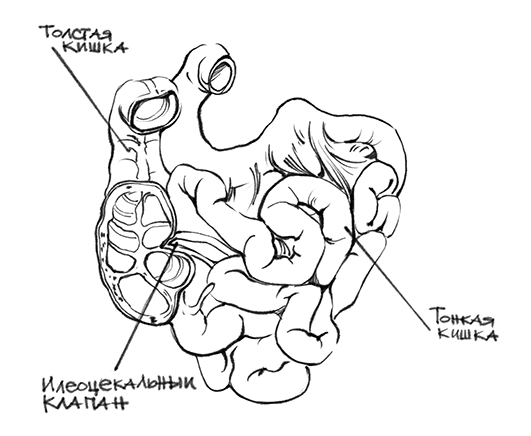Это механический путь попадания микроорганизмов в тонкую кишку. Как и другой, проистекающий отсюда: если ты дышишь поверхностно, кишечник нормально не кровообращается и копит всякий мусор. Но есть еще и химический: когда клапаны не работают рецепторно из-за нарушенного рН-баланса.