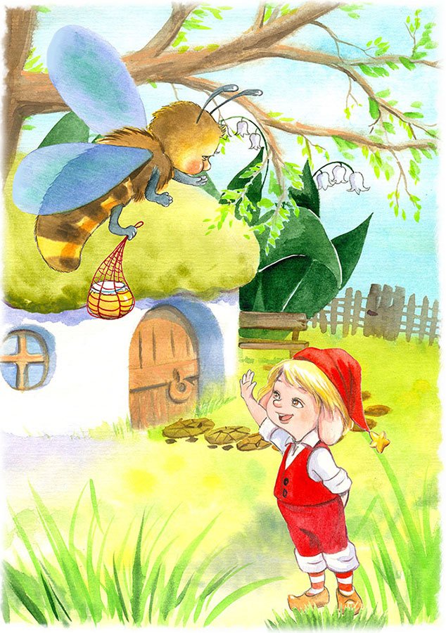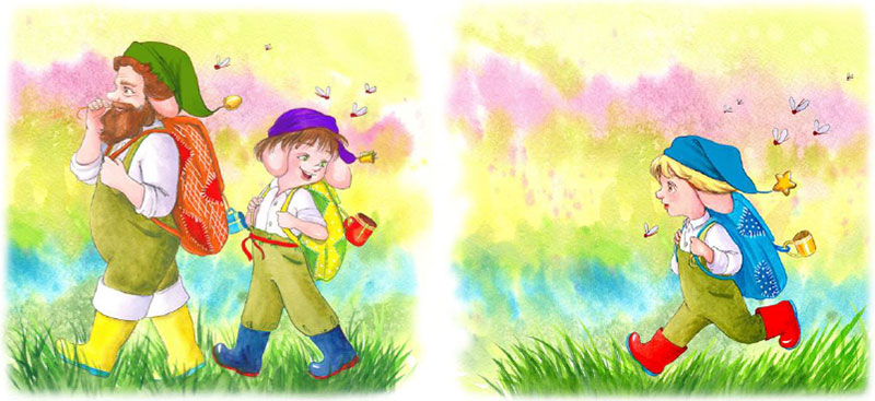 Когда в деревне появляется новый гном (а появляются гномы из расколовшихся орешков: просто падают с дерева и – оп! – вылетают из скорлупки), в день его рождения специально шьют два колпака. Один традиционный – красный, его малышу выдают сразу: гномы носят такие в течение рабочей недели. Второй – торжественный. Его цвет подбирают специально для каждого. Он не просто выделяет гнома из толпы. Волшебный колпак способен улучшать настроение, помогает вспомнить все самые лучшие моменты, прожитые хозяином, и даже исполняет несложные желания – уменьшает предметы, например. Ведь норные гномы очень малы – не больше полёвки. Им не так просто в нашем огромном мире!