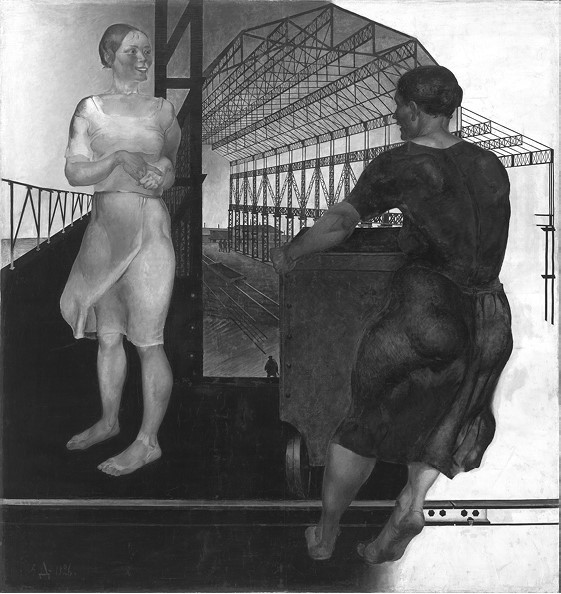 Александр Дейнека. На стройке новых цехов. 1926. Х., м. 213 × 201 см. ГТГ, Москва