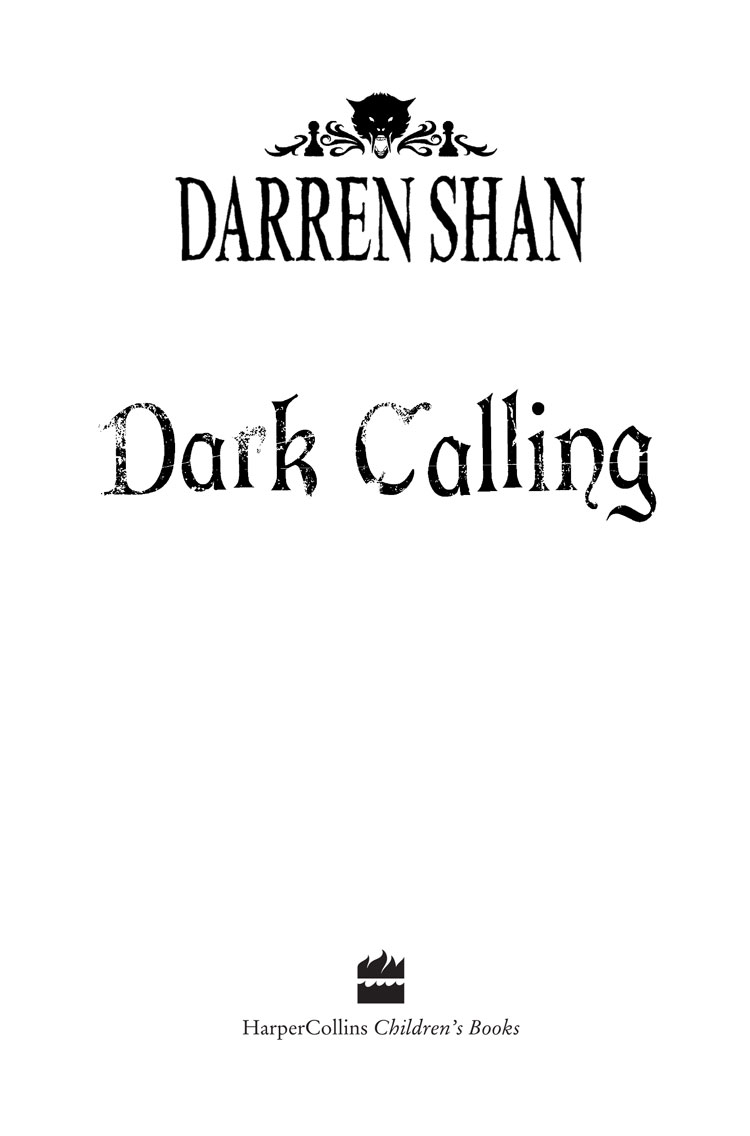 DARK CALLING. Copyright © Darren Shan 2009. All rights reserved under International and Pan-American Copyright Conventions. By payment of the required fees, you have been granted the non-exclusive, non-transferable right to access and read the text of this e-book on-screen. No part of this text may be reproduced, transmitted, down-loaded, decompiled, reverse engineered, or stored in or introduced into any information storage and retrieval system, in any form or by any means, whether electronic or mechanical, now known or hereinafter invented, without the express written permission of HarperCollins e-books.