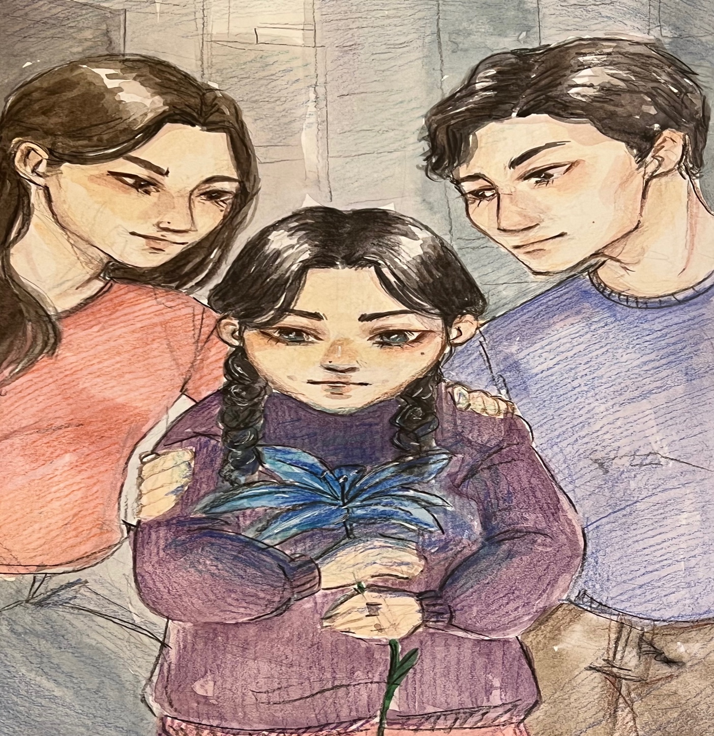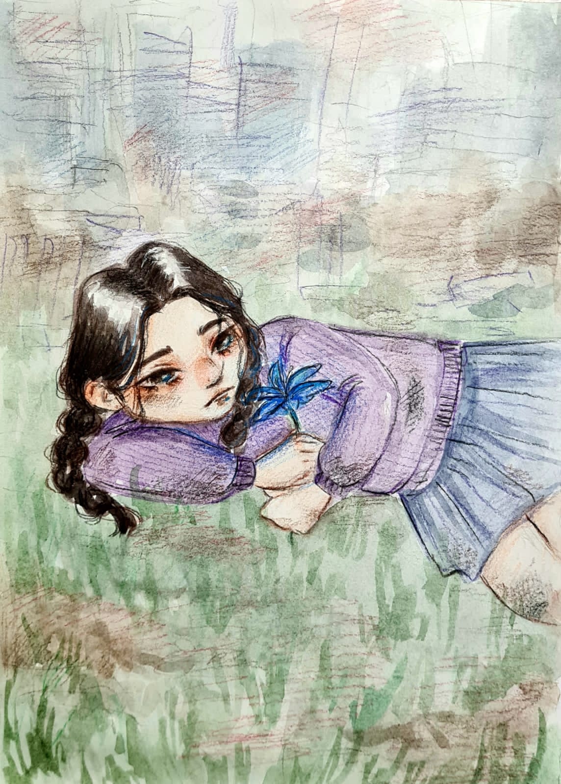 Айнур звала своих родителей в течение двух часов, как вдруг почувствовала, что начинает сильно слабеть. Она присела на землю возле двора их разрушенного домика. Что ей теперь оставалось делать? Сквозь помутневшие глаза она увидела, как недалеко что-то сверкает. Что-то знакомое, синего цвета. Это была лилия. Та самая лилия, которую семья Оспановых сажали вместе. Айнур казалось, что цветок зовет ее, что она слышит голоса своих родителей в лепестках этой лилии. Собрав последние силы, она взяла сверкающую лилию в руки и загадала желание: