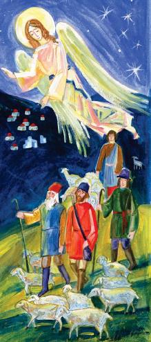 Была ночь. Пастухи на поле пасли стадо свое[1]. Вдруг предстал им Ангел Господень, и свет Господень осиял их. Они испугались, но Ангел сказал им: «Не бойтесь, я возвещаю вам великую радость, которая будет всем людям: ныне родился вам в городе Давидовом Спаситель, Христос Господь. И вот вам знак, почему вы узнаете Его: вы найдете Младенца в пеленах, лежащего в яслях». Вдруг явилось с Ангелом множество воинства небесного, которое пело: «Слава в вышних (на небесах) Богу и на земле мир, в человеках благоволение!» Когда Ангелы отошли на небо, пастухи сказали: «Пойдем в Вифлеем и посмотрим, что там случилось». Пошли, нашли Пресвятую Деву Марию, Иосифа и Младенца, лежащего в яслях, и поклонились Ему. Рассказали, что было возвещено им о Младенце. Все дивились тому, что рассказывали пастухи, а Пресвятая Дева Мария слагала в сердце Своем все слова их. Поклонившись Божественному Младенцу, пастухи удалились, славя и хваля Бога.