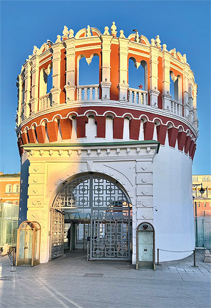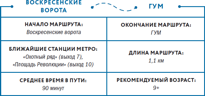 ② Воскресенские ворота со Средних веков считались началом Москвы. Раньше все въезжающие в город – от царской семьи и высшего света до купцов, мещан и крестьян – останавливались здесь и молились чудотворной Иверской иконе Божьей Матери. Икону привезли из греческого Афона в 1648 году по просьбе патриарха Никона и специально возвели под нее часовню. Москвичи с теплотой называли икону «Матушкой» и даже придумали пословицу: «Кто “Матушку” не видал – тот в Москве не бывал». К сожалению, в 1930-е годы советская власть полностью снесла Воскресенские ворота, идеологически борясь с православными символами. Здесь долгое время оставался голый проезд с улицы Горького (Тверская) напрямую на Красную площадь. Но при Лужкове, в 1995 году, ансамбль парадных ворот с узорчатыми башенками вновь воссоздали. На Афоне современными монахами был сделан новый список Иверской иконы. И сегодня мы снова можем полюбоваться часовней с голубым куполом и золотыми звездами, а также почтить чудотворную икону.