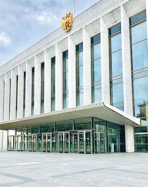 Лаконичные формы ⑤ Государственного Кремлевского дворца не оставят равнодушными любителей архитектурного стиля «советский модернизм». Вглядитесь в геометрию: строгие витражи и пилястры, изящная золотая окантовка и обилие белоснежного мрамора – потрясающе! Построить такое современное для своего времени (1961 год) здание пожелал лично Никита Сергеевич Хрущев, отсюда и второе название: хрущевский дворец. Почему «Айсберг»? Концертный зал – гигант, который своими объемами уходит в подземные недра территории Кремля, не полностью открываясь нам снаружи, словно дрейфующий айсберг в водах Северного Ледовитого океана. В цифрах получаем следующую картину: минус 15 метров в глубину, внутри более 800 помещений, банкетный зал на 2500 гостей, а вместимость зрительного зала – до 6000 человек. И конечно же, Кремлевский Дворец известен своими легендарными елками, балетами Кремлевской труппы, эстрадными концертами и самым вкусным жюльеном в буфете на последнем этаже.