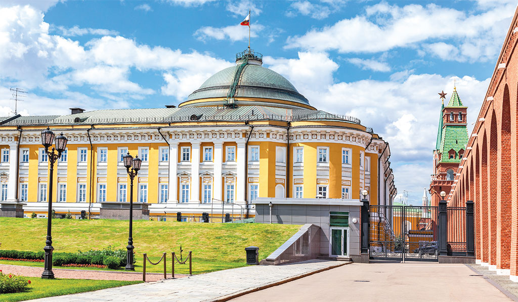 Доступ к ⑥ Сенатскому Дворцу для широкой публики запрещен, за каждым шагом туристов наблюдают бдительные службы охраны Кремля. Любое отклонение от маршрута сопровождается предупредительным сигналом свистка. Сенат построили при Екатерине II по проекту Матвея Казакова в 1787 году. За это великолепное здание в духе классицизма его наградили бриллиантовым перстнем и перчатками с руки самой императрицы.