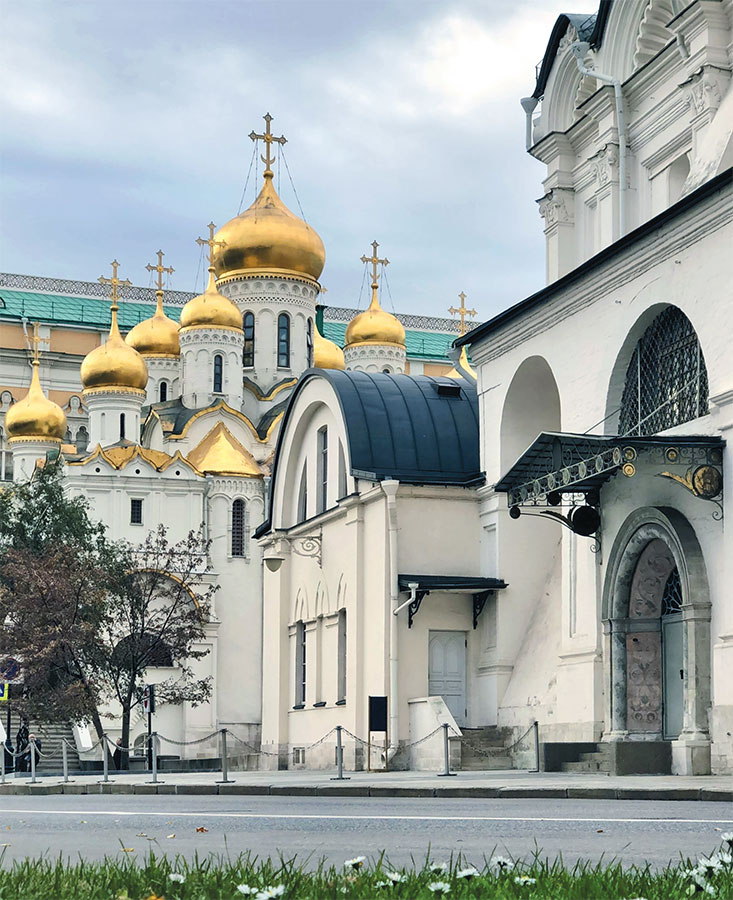 ⑩ Архангельскому собору 500 лет, он был построен в 1505–1508 годах. Внутри храма поистине таинственная сакральная обстановка: все пространство под высокими сводами – это большая усыпальница с медными надгробиями русских князей и царей. Всего в усыпальнице 53 захоронения. Двигаясь между надгробий в полумраке и тишине, вчитываясь в имена великих личностей – хорошо знакомых нам еще со страниц школьного учебника по истории – так и ощущаешь мурашки по телу… Связь времен в великом месте здесь и сейчас.