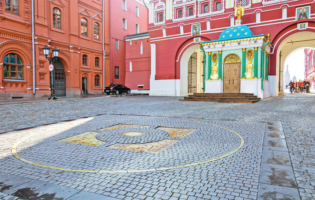 Это точка отсчета расстояний от Москвы до разных городов нашей страны. Работа известного скульптора Александра Рукавишникова появилась на этом месте в 1995 году. Скульптор вложил в точку московского нуля скрытый смысл: достопримечательность выполнена в виде окружности с обозначением сторон света – символ бескрайних российских земель, и при этом каждой стороне света (север, юг, запад, восток) соответствуют блестящие плиты с изображением обитателей животного и растительного миров в разных регионах. Еще один повод вспомнить, что в нашей стране 11 часовых поясов, четыре климатические зоны и очень богатая флора и фауна. А в центре композиции самое главное место занимает медальон, похожий на гладкий слиток золота (особенно на фоне серой брусчатки). На него можно встать и загадать заветное желание, затем подбросить вверх монетку так, чтобы она звонко приземлилась в границах очертаний большой окружности.