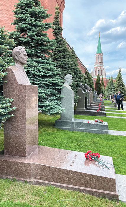 Увидеть усыпальницу вождя и посетить главное кладбище СССРХорошо рассмотреть мраморно-гранитное здание ⑦ Мавзолея можно со стороны Красной площади. А вот попасть внутрь Траурного зала, где находится хрустальный саркофаг с телом Владимира Ленина, гораздо сложнее. Вход туда бесплатный. Но, во-первых, доступ разрешен согласно режиму работы, в утренние часы, с короткими временными интервалами. Во-вторых, у входа, как правило, стоит большая очередь из сотни желающих попасть внутрь. В-третьих, вход осуществляется непосредственно не с Красной площади, а от Никольской башни: нужно пройти контроль специальных служб ФСО. И вот вы у Кремлевской стены за могучими голубыми елями, где тянется некрополь с захоронениями известных людей, революционеров, политических деятелей и первых лиц государства советского времени. Среди них – Яков Свердлов, Михаил Фрунзе, Феликс Дзержинский, Михаил Калинин, Иосиф Сталин, Леонид Брежнев, Константин Черненко, а также Максим Горький и великий космонавт Юрий Гагарин.