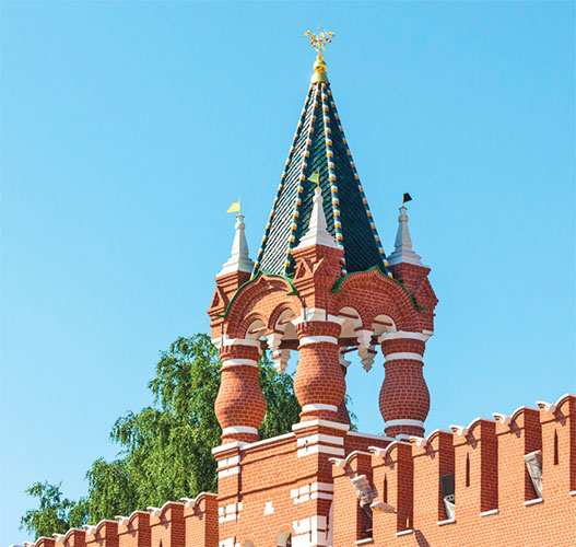 ⑨ Царская башня – одна из самых необычных башен Московского Кремля. Это даже не совсем башня, а скорее очаровательный кирпичный шатер, вписанный в архитектурный кремлевский облик. Ее построили гораздо позже, в 1680 году, прямо на стене, и никакой фортификационной функции она не несет. Историки до сих пор гадают, зачем ее построили и почему торжественно назвали Царской. Есть даже предположение, что во времена Ивана Грозного здесь сконструировали деревянную башню – смотровую площадку царя, чтобы любоваться храмом Василия Блаженного.