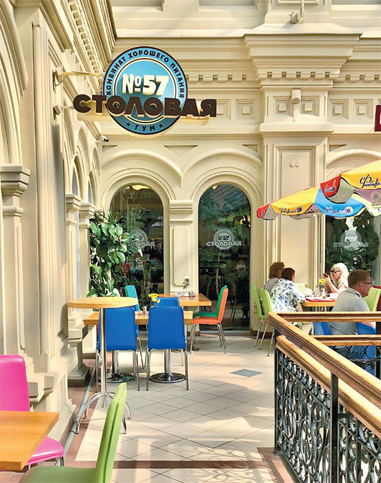⑮ «Столовая № 57» не только одно из самых бюджетных мест, где в районе Красной площади можно полноценно поесть, но и знаменитая московская столовая с отсылкой ко временам хрущевских общепитов, хотя исторически она была открыта Bosco Group не так давно. Главная особенность – советский антураж: интерьер, граненые стаканы, клеенчатые скатерти и плакаты с лозунгами вроде «Во благо всего мира пей стакан кефира». Цены доступные, ассортимент широкий, много закусок, разных супов, вторых блюд, десертов и пирожков. Сюда интересно будет прийти иностранцам, всем ностальгирующим по прошлому и тем, кто в столовых питается редко. Но если вы завсегдатай столичных столовых, вы здесь ничему не удивитесь (разве что очереди). Хотя говорят, что все блюда приготовлены в соответствии с советскими ГОСТами и по рецептам из «Книги о вкусной и здоровой пище».