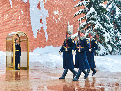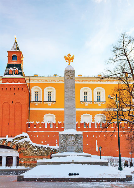 ④ Могила неизвестного солдата – военно-мемориальный комплекс с самой могилой, Вечным огнем и Аллеей городов-героев. Каждый день с 8:00 до 20:00 при любых погодных условиях почетный караул «Пост № 1» несет свою службу у Вечного огня, и каждый час происходит смена караула, посмотреть на которую приходит огромное количество туристов. Зрелище очень торжественное и патриотичное: караул делает ровно 108 шагов вдоль аллеи боевой славы до Вечного огня по образу «печатного шага», введенного еще Павлом I в XVIII столетии.