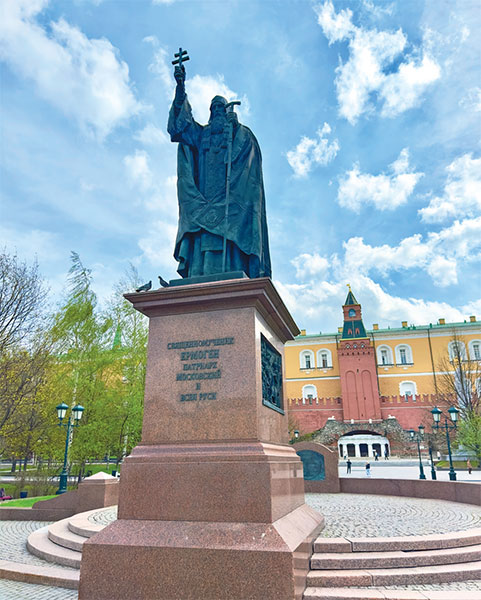 Патриарх Гермоген – ключевая фигура в событиях Смутного времени, и памятник ему должен был вырасти рядом с памятником Минину и Пожарскому на Красной площади сначала в 1812 году, затем в 1912 году – в годовщину победы над польско-литовскими захватчиками. Но к идее установки монумента вернулись только в 2012 году. Власти провели всероссийский конкурс на создание памятника, где среди более чем 70 заявок победителем признали работу авторского коллектива Салавата Щербакова и Игоря Воскресенского. Четырехметровая скульптура патриарха отлита из бронзы, а на гранитном постаменте в прямоугольных нишах – содержательные барельефы, на которых изображены сцены заточения Гермогена в темнице и избрания Михаила Романова царем всея Руси. Основная идея: памятник Гермогену и памятник Минину и Пожарскому – это одно целое. И хоть они стоят в разных местах, они очень похожи по оформлению: форма, стилистика, материалы, размах, шрифты.