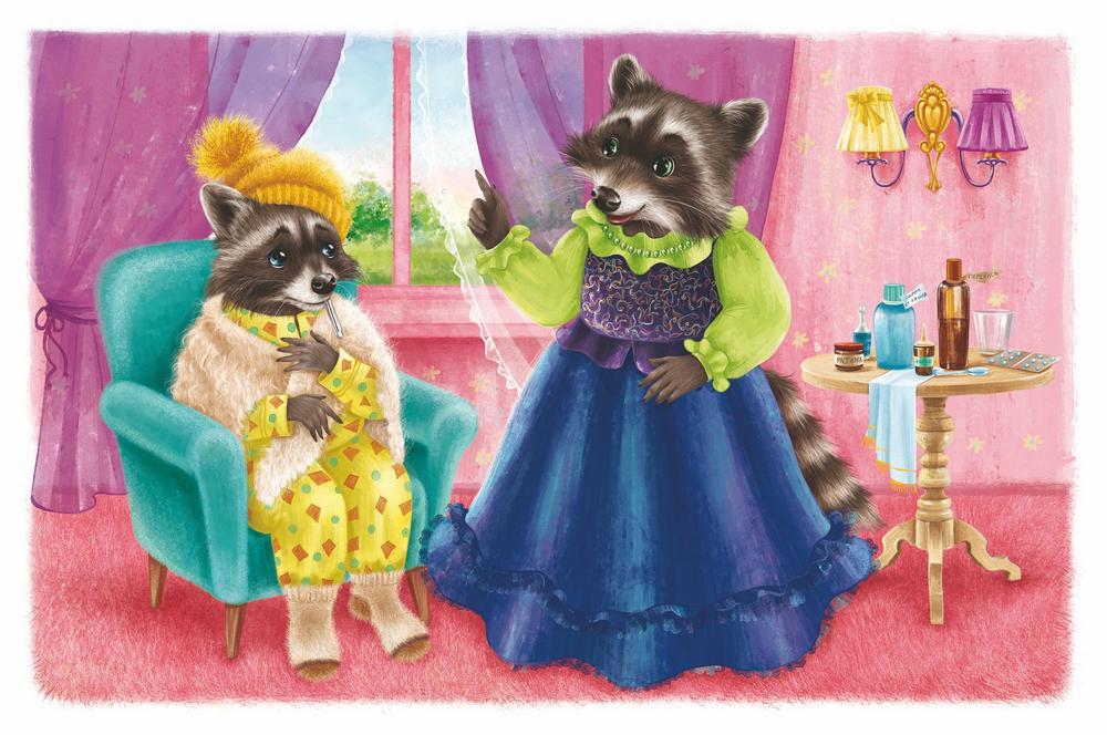 – Тогда делай то, что я велю, – простонала енотиха, – немедленно в кровать. Я сейчас принесу обед.