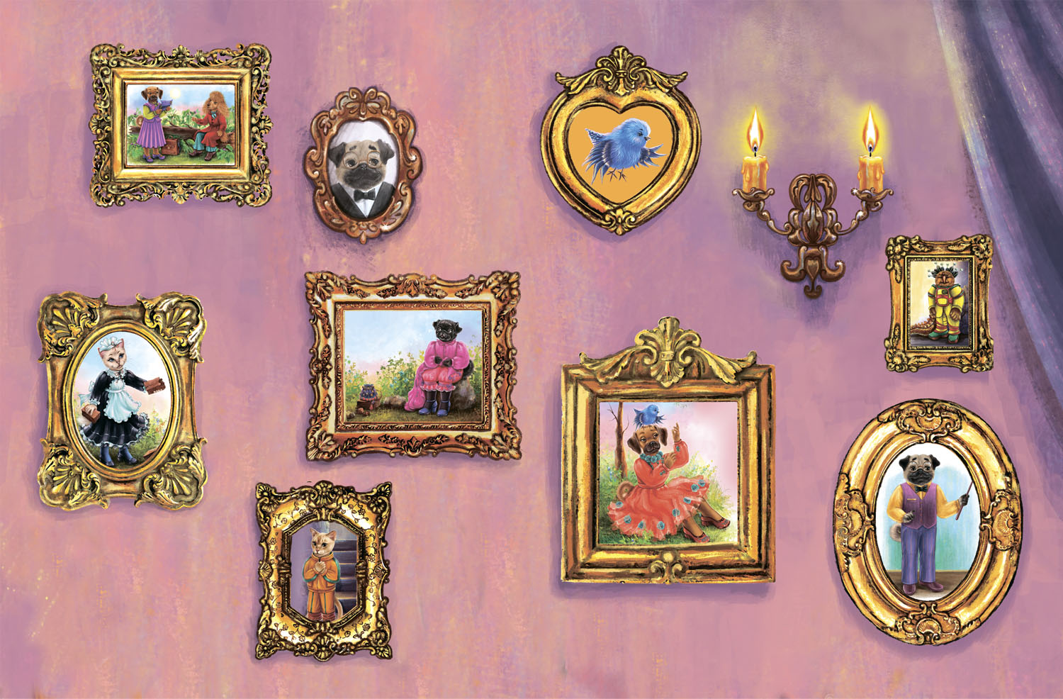Мокрая, но очень гордая собой Мафи вошла в коридор, и к ней бросились обитатели дома: лучшая портниха Прекрасной Долины Зефирка, знаменитый ювелир Капитолина, непревзойденный стилист Марсия, самые младшие сестры Жози и Куки, которые пока не поняли, кем хотят стать. Они тормошили, обнимали, целовали Мафи. На первый этаж спустились и старшие члены семьи: самый умный мопс Черчиль, его жена Феня, хранительница библиотеки, архива и летописица Прекрасной Долины. За ними спешила друг семьи чихуа-хуа Антонина и бежал щенок Дёма, сын Черчиля и Фени. Потом все сели за стол, начали пить какао, угощаться кексами. Но вдруг раздался такой удар грома, что Куки упала со стула.