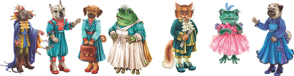 Мопсишка поглядела туда, куда показывал новый знакомый. В траве виднелась маленькая зеленая лягушечка, на голове у нее торчало два птичьих пера.