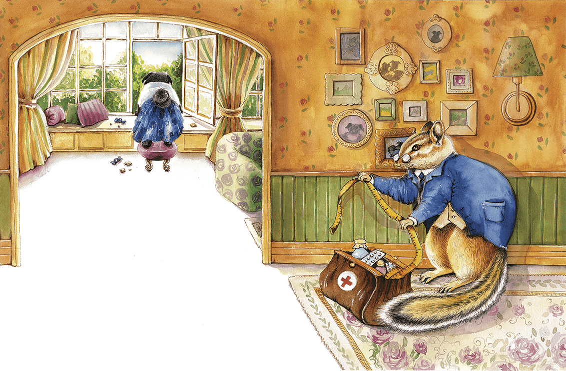 В доме мопсов постоянно бывают гости: белка Матильда, черепашки Че и Ге, хомяк Зигфрид, Черчиль, Антонина, заглядывает почтовый жаб Густав. Друзей у жителей Мопсхауса море, и все, кто прибегает в уютный дом с красной черепичной крышей, очень приятные животные, даже врач бурундук Паша, который всегда носит в сумке шприцы, таблетки, микстуры. Паша делал Мафи прививки, ей было страшно, но совсем не больно. Когда доктор входит в прихожую, Мафи никогда не выскакивает в окно, чтобы спрятаться от него в саду. А вот Зефирка, услышав из холла скрипучий голос бурундука: «Эй, есть тут кто живой?», живенько пододвигает к подоконнику табуретку, сопя от усилий, вскарабкивается на нее, вываливается сочной грушей в клумбу и рысит в кусты, подбирая выпавшие из карманов платья печенье, конфеты, мармеладки. Почему она так поступает?