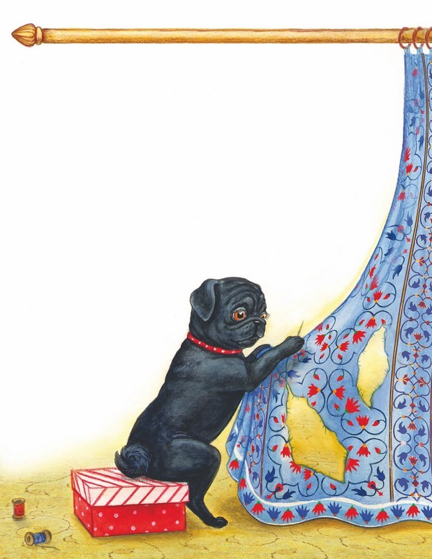 Зефирка поняла, что на нее никто не обращает внимания, осторожно вытащила коробку, которую Ксюша поставила под софу, поспешила в маленькую комнату, посмотрела на штору и ойкнула. Ну и ну! Это не дырка! От некогда красивой гардины почти ничего не осталось. Ну да ладно, глаза боятся, а лапы делают. Художественная штопка – любимое занятие мопсихи-сладкоежки, и нет ей равных в искусстве залатывания прорех. Зефирка живо вдела нитку в иголку и приступила к работе, слушая голоса, которые доносились из большой комнаты.