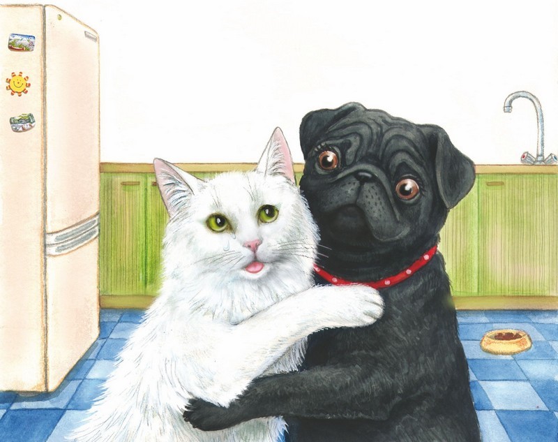Василиса вытянула вперед дрожащие передние лапки, сделала несколько шагов, упала на грудь мопсихи и отчаянно зарыдала. Зефирочке стало невыносимо жаль кошку, она нежно обняла ее.