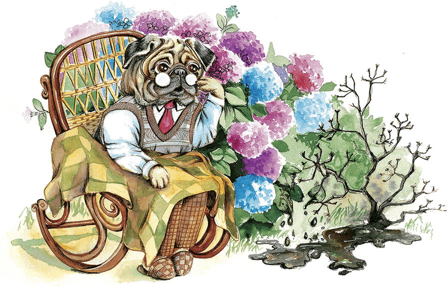 Отец поблагодарил Вольфа и, конечно, разрешил украсить наш сад. Все остальные жители тоже захотели посадить эти цветы, и их получали. Вольф трудился не покладая лап, высаживая Флораны во дворах. Кусты оказались так хороши, что жители Прекрасной Долины постоянно любовались ими, не могли оторвать глаз от лепестков, которые розовели, краснели, синели, лиловели, чернели… Моему отцу, ученому Карлу, тоже очень нравился наш Флоран, папа часами сидел около него в кресле-качалке, вдыхал аромат, не ел, не пил. А я находился у ног отца, мы с ним вместе не могли уйти от куста, что-то нас не отпускало, у нас не осталось никаких желаний, кроме одного: смотреть не отрываясь на цветы. И вдруг! Бац! Было такое ощущение, что ко мне в уши, нос повеял свежий ветер, и я очнулся. Смотрю, Флорана нет, вместо него зловонная черная лужа, около нее стоит Ада, мать моей подруги Мули, с кастрюлькой в передних лапах, оттуда идет розовый дым.