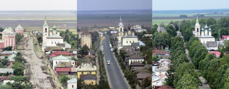 На фото слева направо: работа Прокудина-Горского до революции 1917 года, снимок советских времен и современное фото.