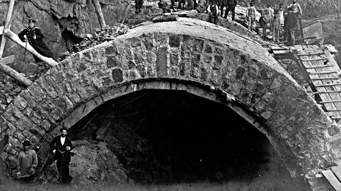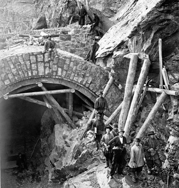 Кругобайкальская железная дорога, «строительство» 1899–1905 годы, завалы откапывали, а не строили. Это видно по возрастной кладке, что засыпана грунтом.