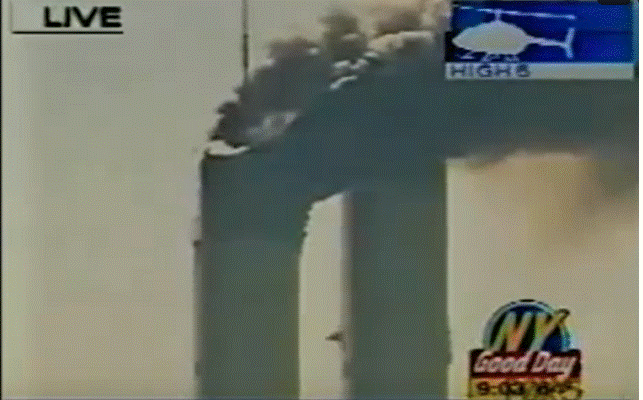 Никаких самолетов не было. Если просмотреть независимые от СМИ видео, то прекрасно видно, что самолетов не было. Здания просто взорвались. Самолеты для показа через СМИ потом пририсовали. Замедление составило 17 секунд. Тех, кто орал об этом, просто заткнули.