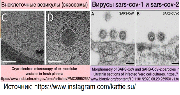 3. Ковидла чудным образом похожа на внеклеточную везикулу экзосому, которая выводит из клетки токсины. Отличить их по виду невозможно.