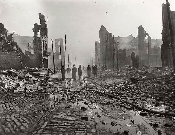 Если отключите свою лень и сами поищите фотографии XIX века с горящими городами, то убедитесь, что ни город, то пожар. Примечательно, что города выглядят не как после пожаров, а как после бомбардировок.
