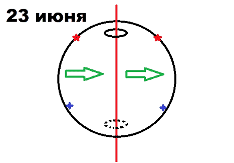 Если восход с разницей в 2 часа 50 минут, то закат уже 4 часа 12 минут… А на шаре должны быть равные… На что уходит час 22 минуты?! А ведь это, учитывая угловую скорость, для экватора больше 2 тысяч километров, а для Москвы: 900 км/час * 1 час 22 мин. = 1230 км.