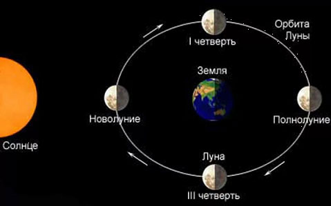 Прищурившись смотрела на схематичное изображение фаз Луны и причин их появления.