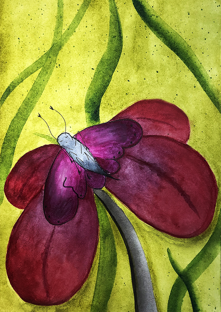 Лето оставило на память о себе ещё немного тепла и немного цветов, чтобы каждый мог полюбоваться ими и улыбнуться, вспомнив всё приятное, что оно ему принесло. Среди таких вот цветов один очень внимательный малыш увидел бабочку. Она лежала на пушистой жёлтой серединке бордово-красного цветка и была совсем неподвижна. Её крылья были сложены, а лапки плотно прижаты к крохотному тельцу. Малыш наклонился поближе и увидел, как одно её тоненькое, почти прозрачное розовое крылышко было порвано.
