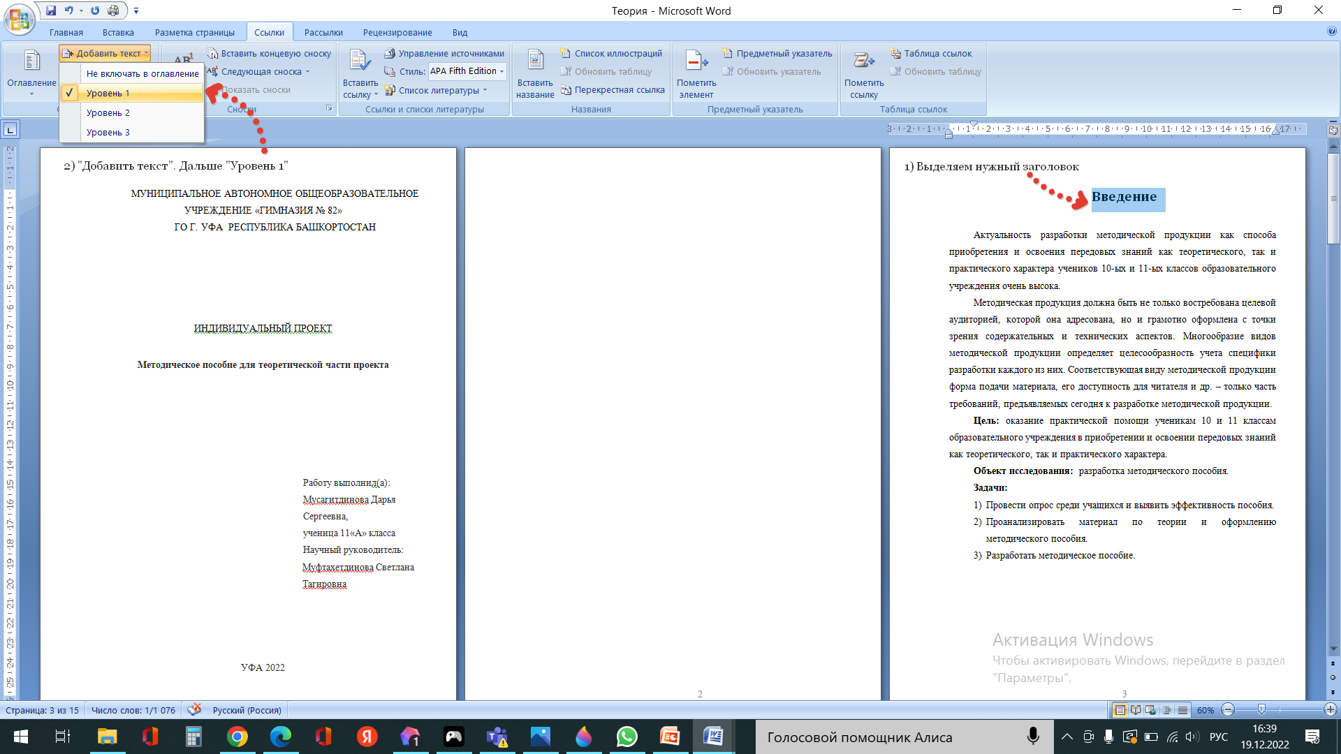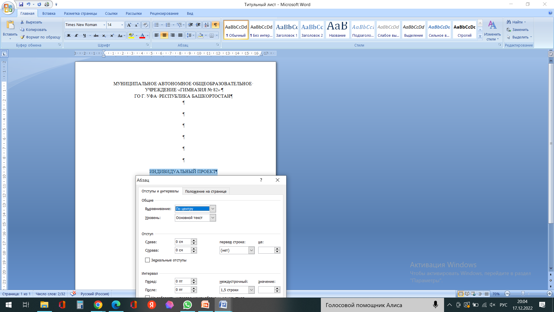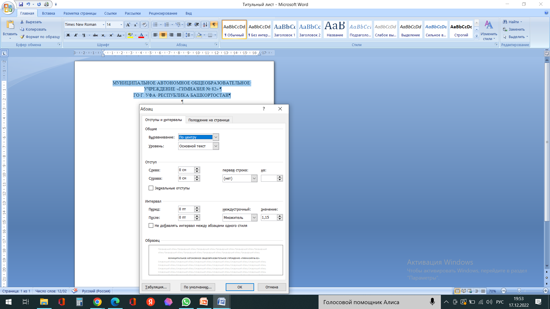 Для начала необходимо напечатать: МУНИЦИПАЛЬНОЕ АВТОНОМНОЕ ОБЩЕОБРАЗОВАТЕЛЬНОЕ УЧРЕЖДЕНИЕ «ГИМНАЗИЯ № 82» ГО Г. УФА РЕСПУБЛИКА БАШКОРТОСТАН