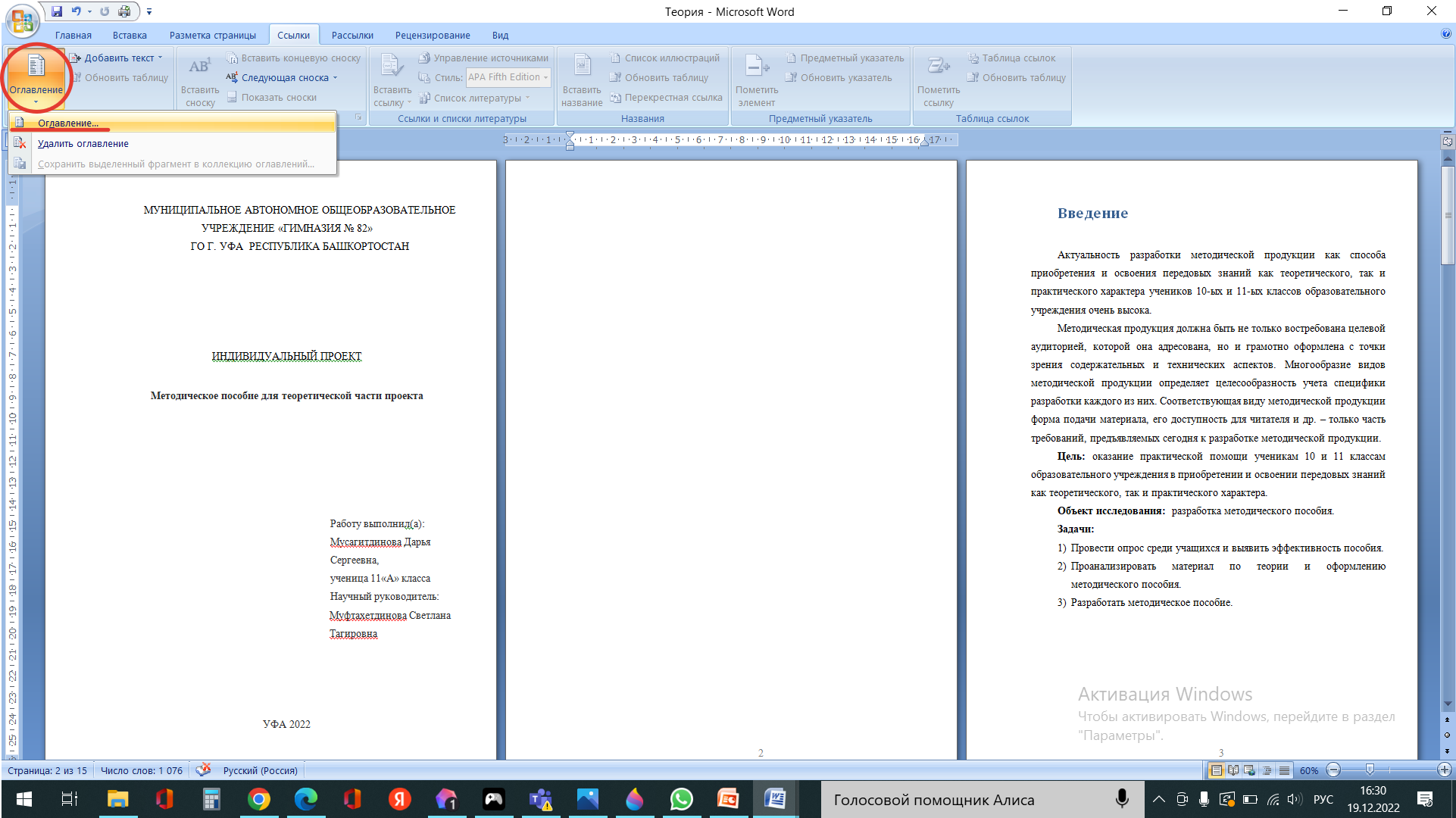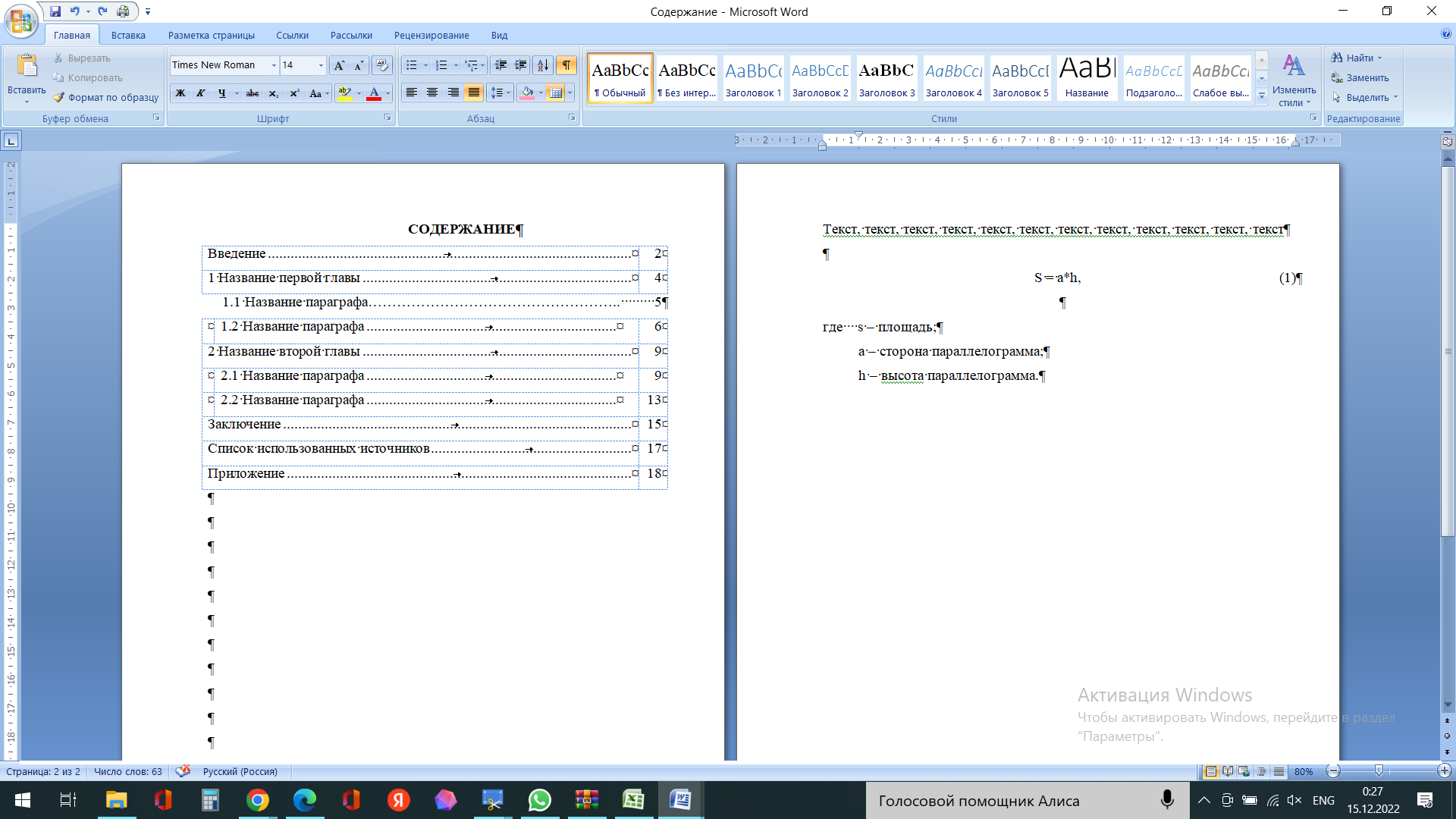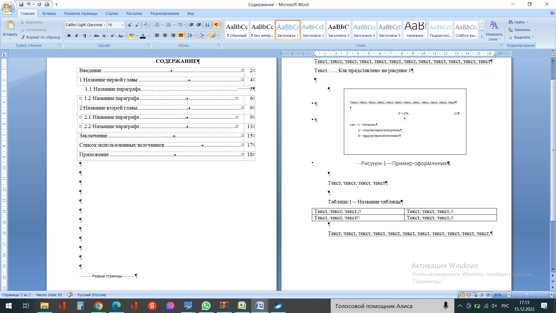 7) После всего нужно обновить таблицу целиком, текст «Оглавление» поменять на «Содержание».
